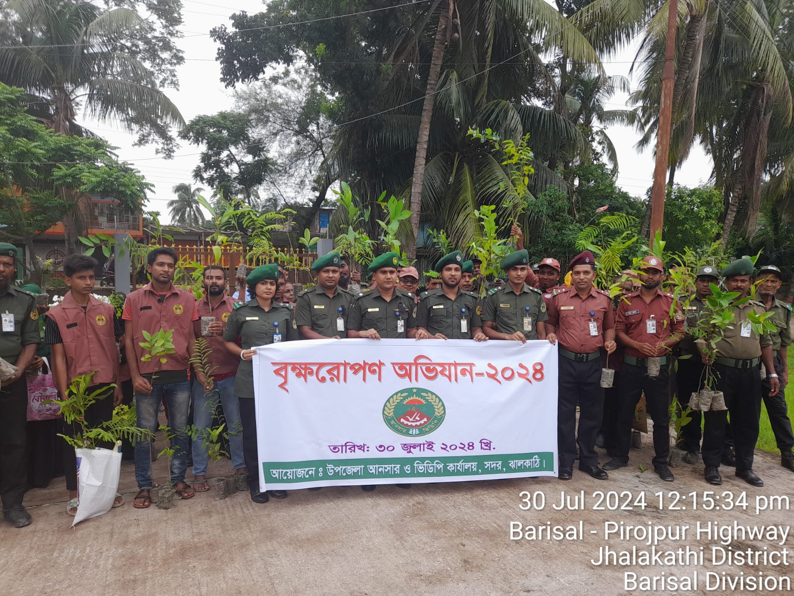 আজ ৩০/০৭/২৪ তারিখ জেলা আনসার ও ভিডিপি কার্যালয় ঝালকাঠি এর উদ্যোগে ও উপজেলা আনসার ও ভিডিপি কার্যালয় ঝালকাঠি সদর এর আয়োজনে আনসার ও ভিডিপি সদস্য ও সদস্যাদের মাঝে প্রায় ২০০ ফলজ, বনজ,ও ঔষধি চারা বিতরণ করা হয়।এই সময় প্রধান অতিথি হিসেবে উপস্থিত ছিলেন জেলা কমান্ড্যান্ট মোঃ সাদ্দাম হোসেন, পিভিএম, তিনি আনসার ও ভিডিপি সদস্যদের মাঝে চারা বিতরণ করেন। এই সময় আরো উপস্থিত ছিলেন মোঃ আল-আমিন, উপজেলা আনসার ও ভিডিপি কর্মকর্তা, সদর, ঝালকাঠি সহ অন্যান্য কর্মকর্তা ও কর্মচারী ও সকল ভাতাভুক্ত সদস্য।